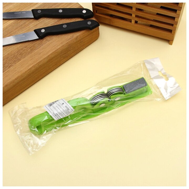 Доляна Точилка для ножей Доляна «острое лезвие», 19x4,5 см, с ручкой и шлифовкой, цвет микс. "Микс" - один из товаров представленных на фото, без возможности выбора.