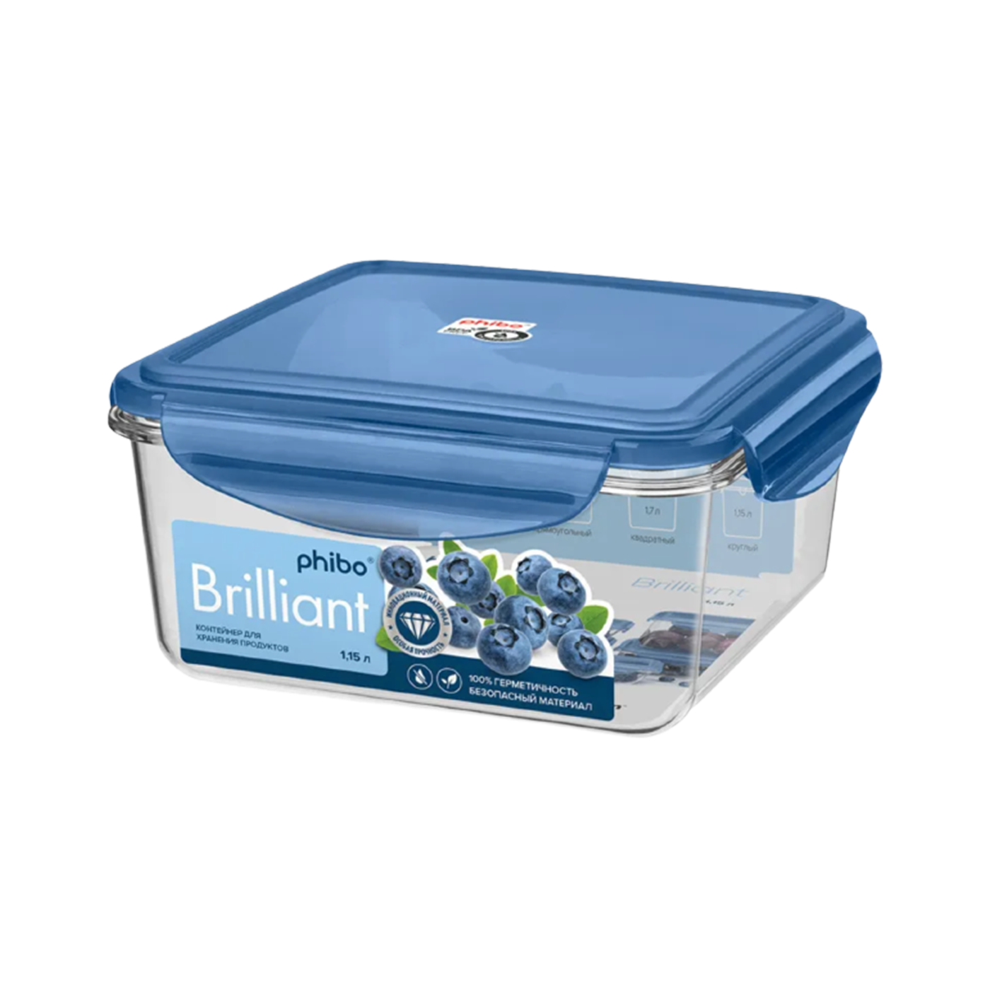 Контейнер Phibo Brilliant, квадратный, 1,15 л, синий