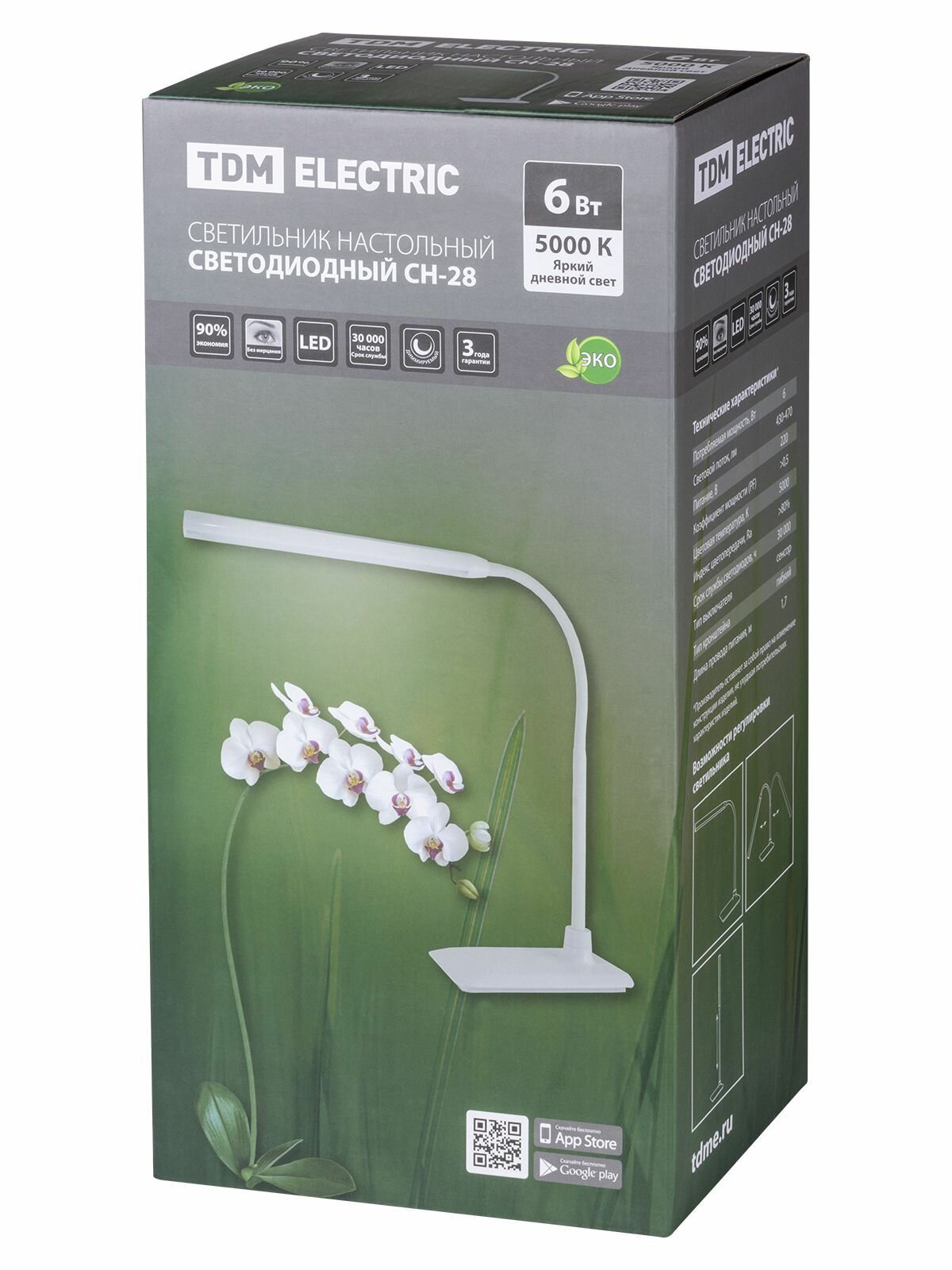 Лампа светодиодная настольная Tdm Electric СН-28, 6 Вт, 5000 K, сенсор-диммер, белая