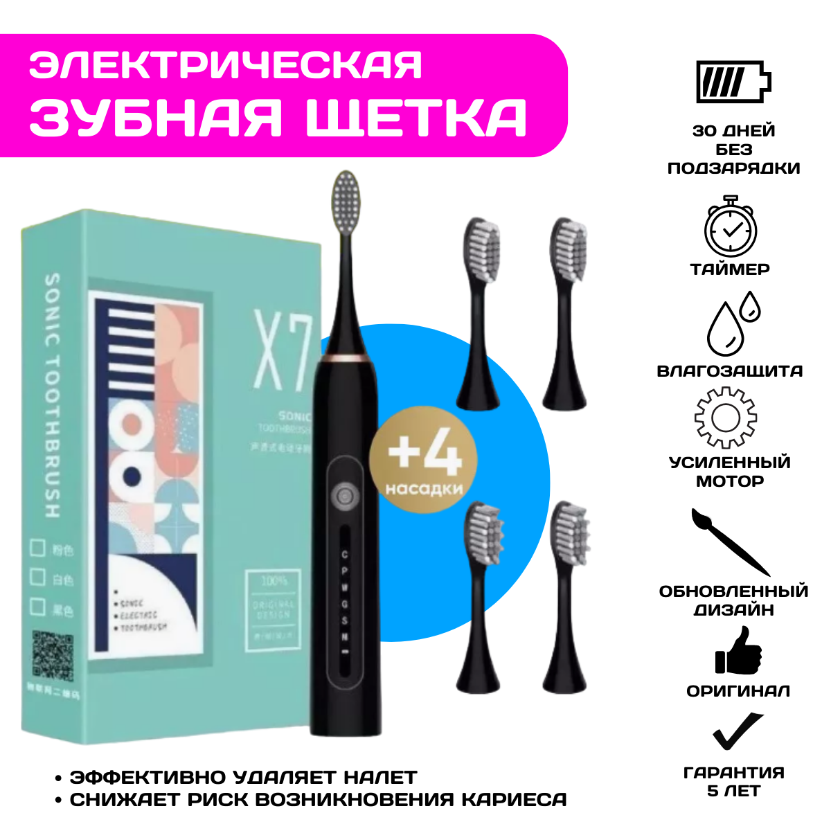 Купить Электрическая ультразвуковая зубная щетка / 4 насадки / Зубная щетка // SONIC TOOTHBRUSH X7 черная