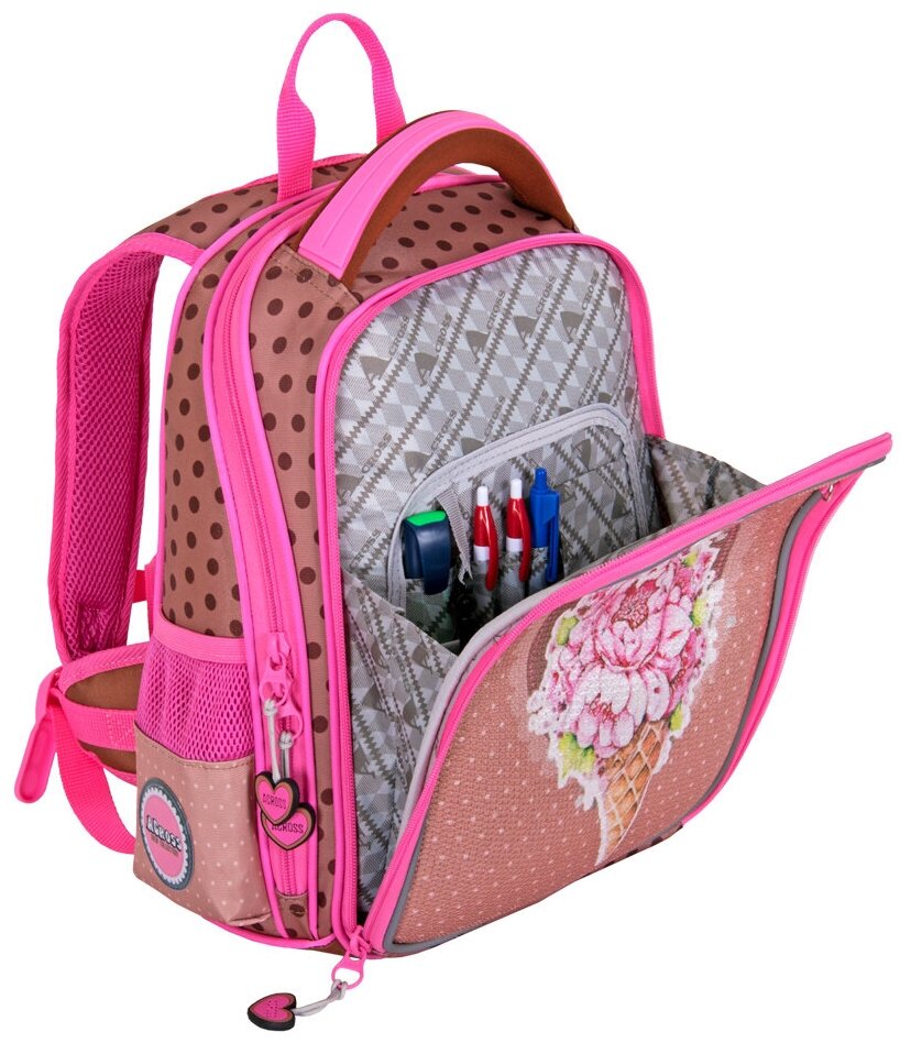 Ранец школьный ортопедический ACROSS для девочки с мешочком для обуви и брелоком в комплекте интересное: