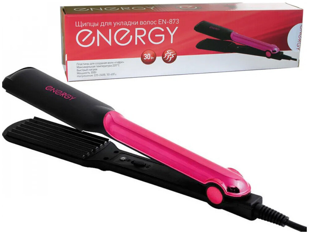 Energy EN-873 выпрямитель для волос, пластины-гофре алюминиевые (33х90мм), 30Вт (900250)