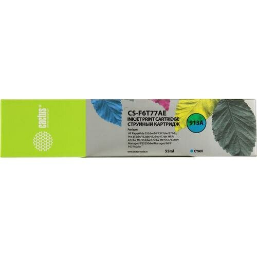 Картридж струйный Cactus Cs-f6t77ae 913A голубой (55мл) для HP PW 352dw/377dw/Pro 477dw/452dw Cs-f6t .