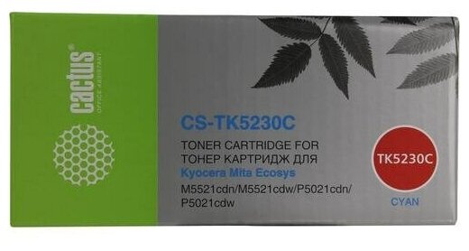Картридж лазерный CACTUS (CS-TK5230C) для Kyocera M5521cdn/M5521cdw/P5021cdn, голубой, ресурс 2600 страниц В комплекте: 1шт.