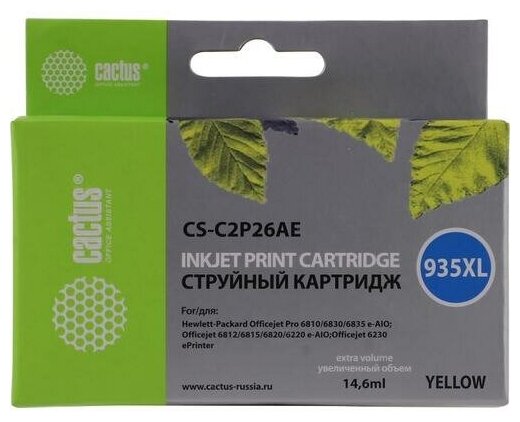 Картридж струйный Cactus Cs-c2p26ae 935xl желтый (14.6мл) для HP DJ Pro 6230/6830 Cs-c2p26ae