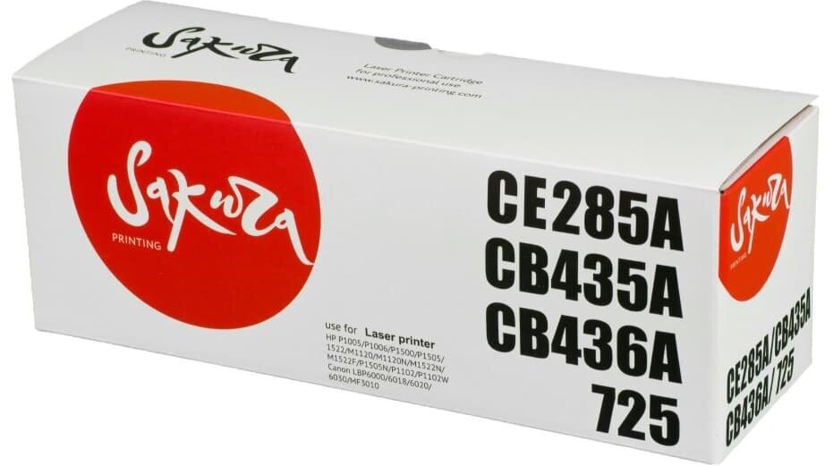 Картридж SAKURA CE285A/CB435A/436A/725 для HP P1005/P1006/P1500/P1505/1522/M1120/M1120N/ M1522N/M1522F/P1505N/P1102/P1102W, Canon LBP6000/6018/6020/60