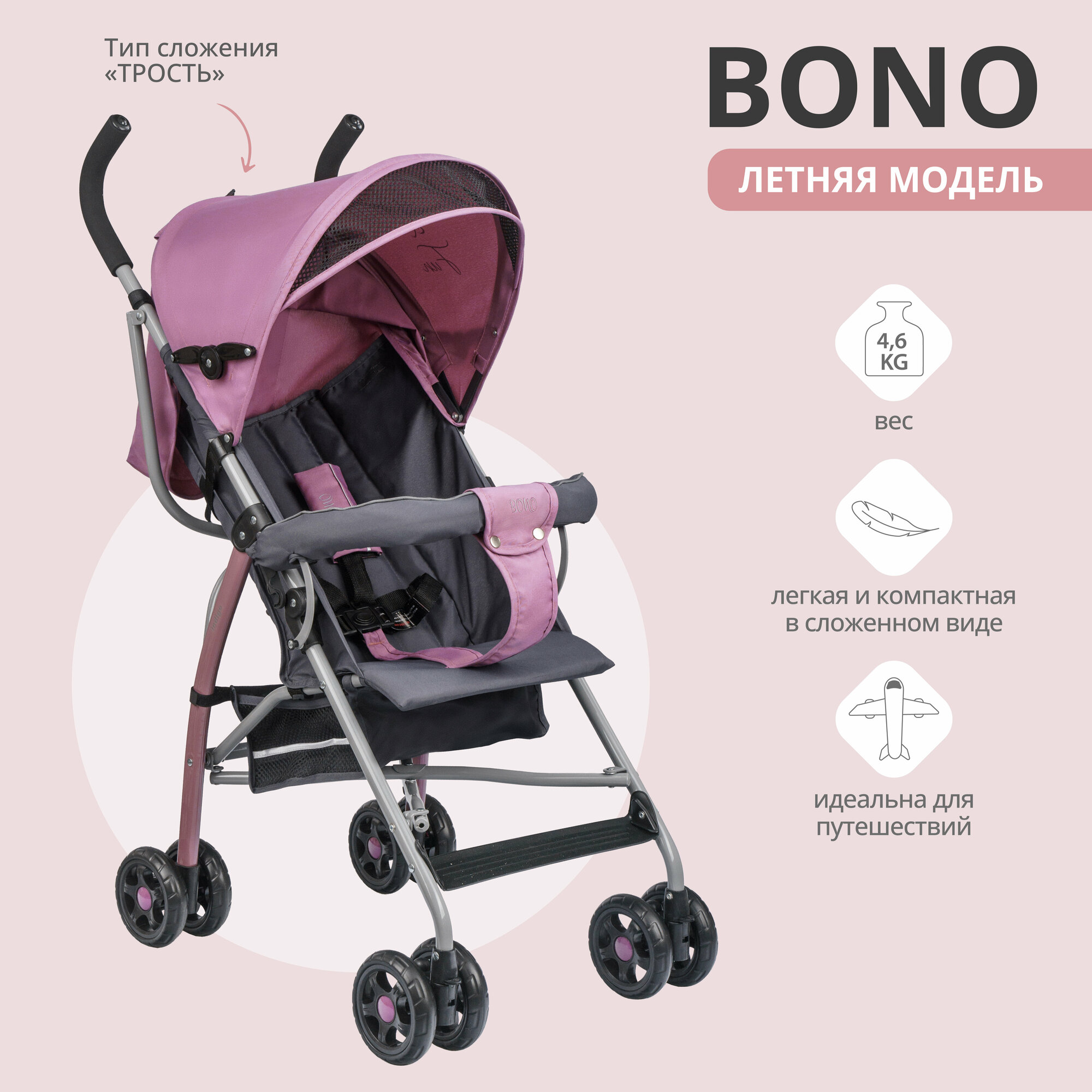 Indigo Коляска прогулочная детская Indigo BONO, складывается в трость, разъемный бампер, цвет пыльная роза