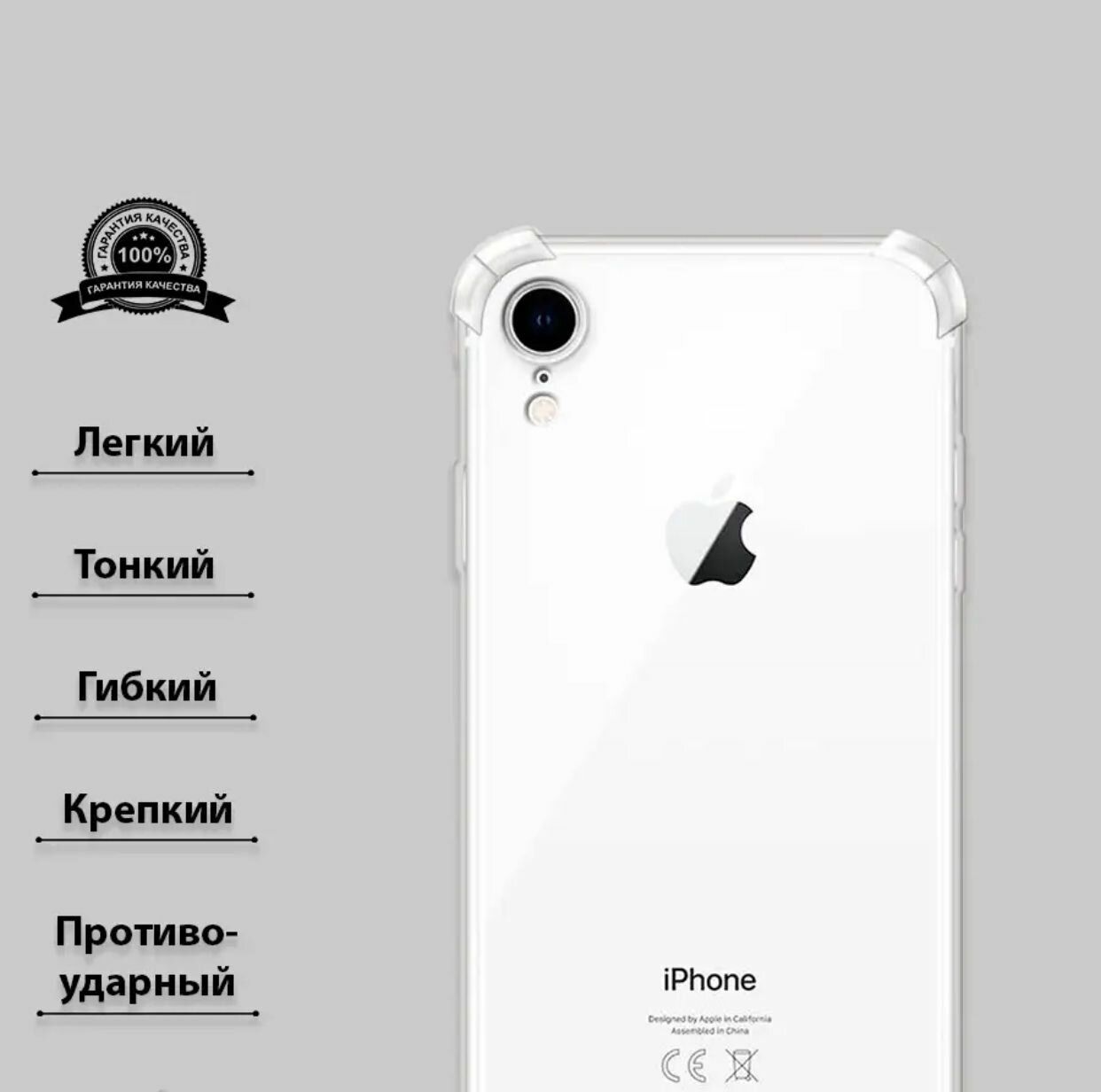 Чехол силиконовый противоударный с усиленными краями с защитой камеры для iPhone XR (Айфон XR), прозрачный