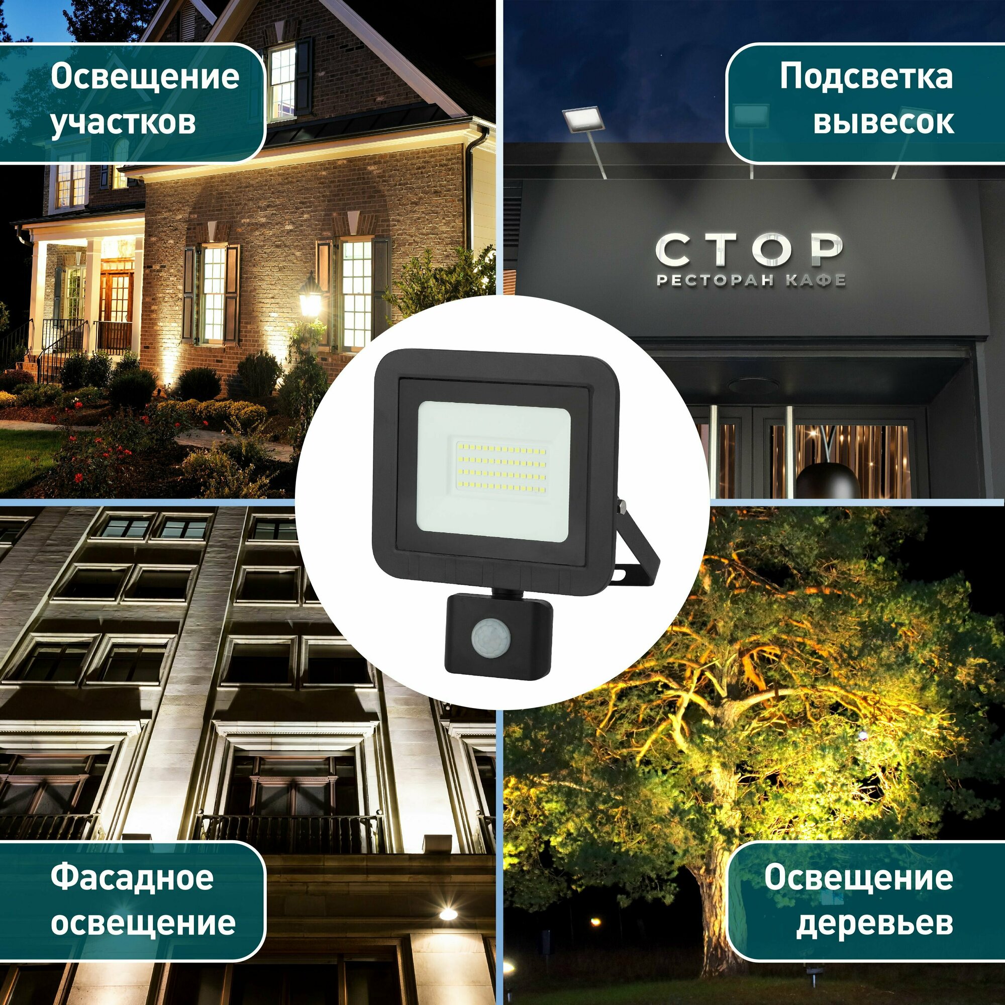 Прожектор светодиодный Эра LPR-02 6500К 30 Вт IP65 с датчиком движения черный (LPR-041-2-65K-030)