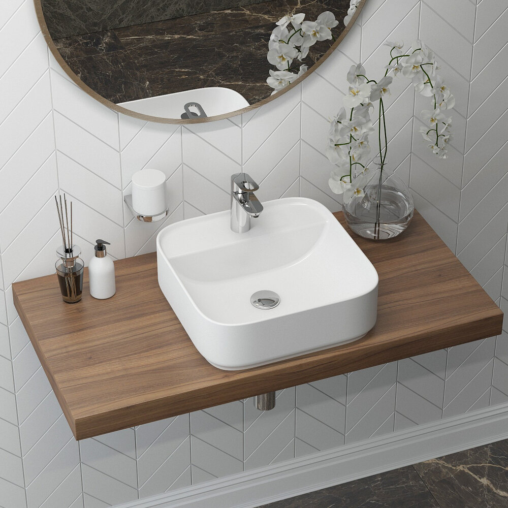 Накладная раковина в ванную Lavinia Boho Bathroom Sink Slim 33311007: умывальник из фарфора 42 см, квадратный, цвет глянцевый белый интересное: