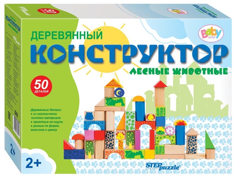 Купить Step Puzzle Baby Step Конструктор деревянный Лесные животные 50 деталей арт.89800 с 2 лет