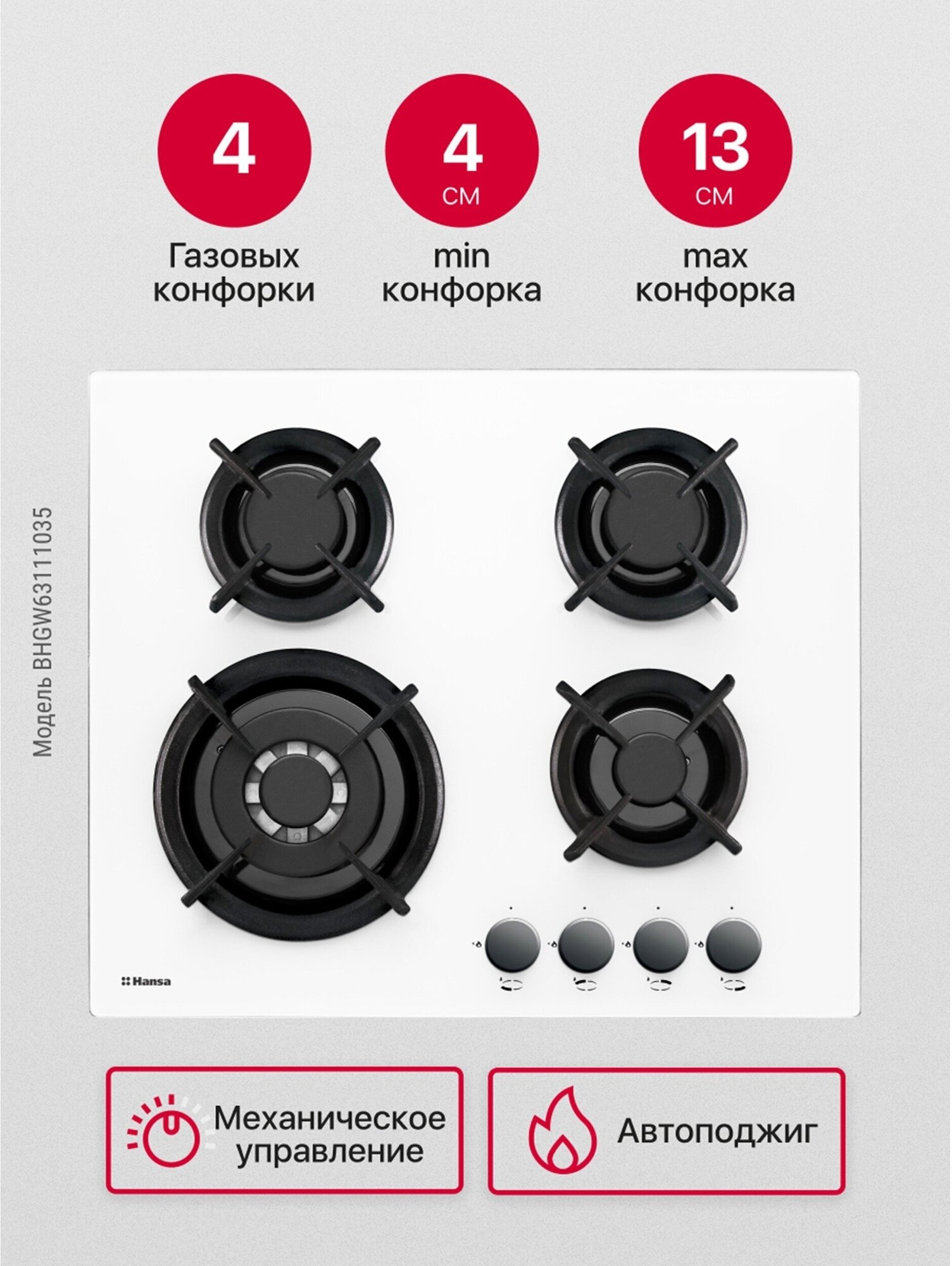 Газовая варочная поверхность HANSA BHGW63111035, белый интересное: