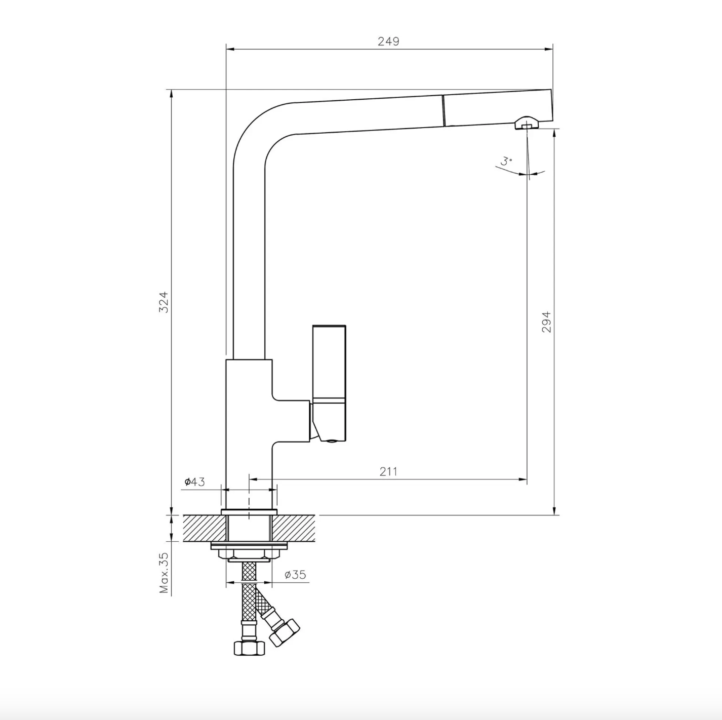 | Комплектация | Смеситель; Гибкая подводка; Крепление |