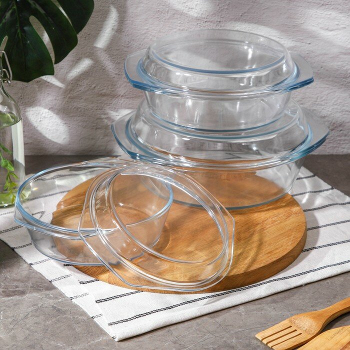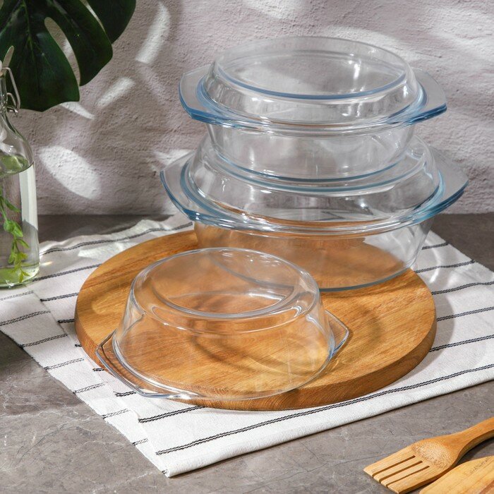 Набор кастрюль из жаропрочного стекла для запекания с крышкой Доляна «Фуэго», 3 предмета: 1,5 л, 2 л, 3 л