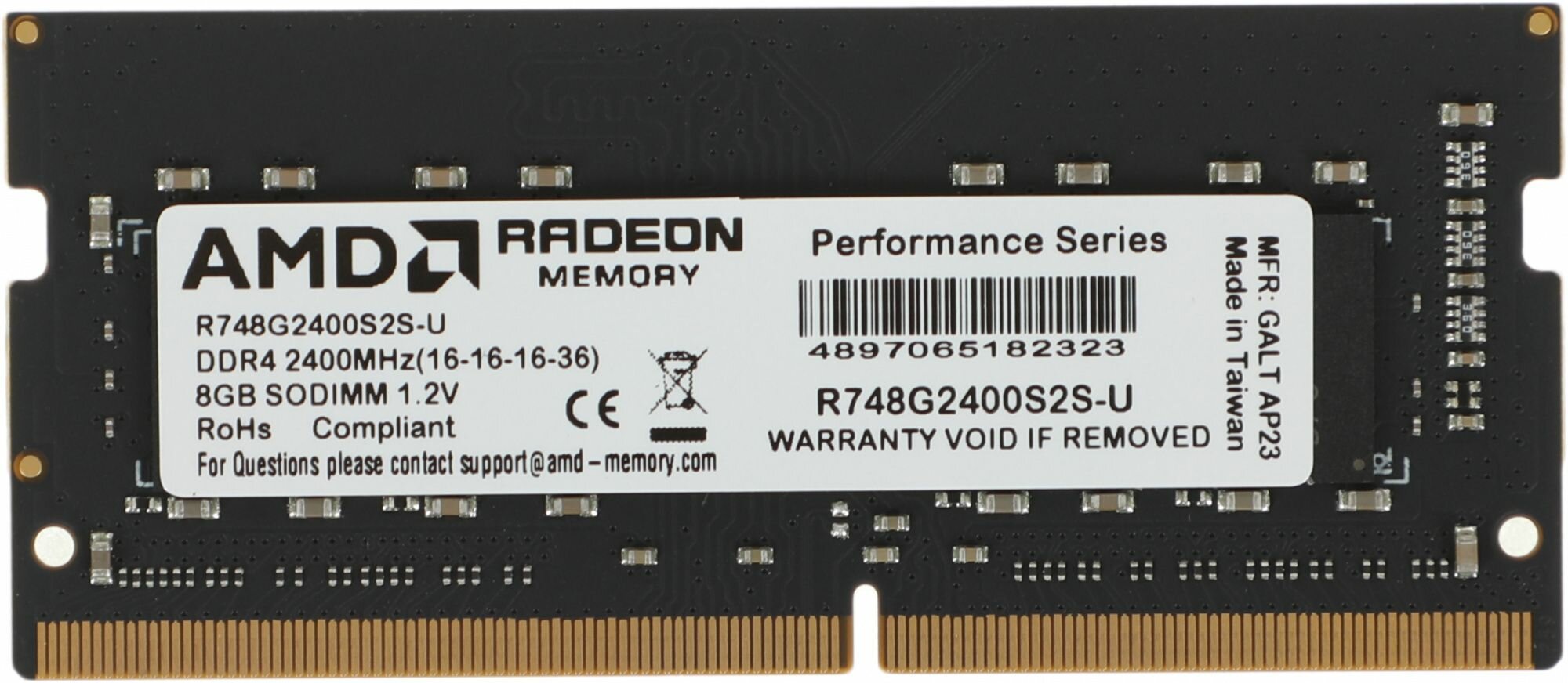 Модуль памяти 8GB AMD Radeon DDR4 2400 SO Dimm R7 Performance Series Black R748g2400s2s-u Non-ECC, .