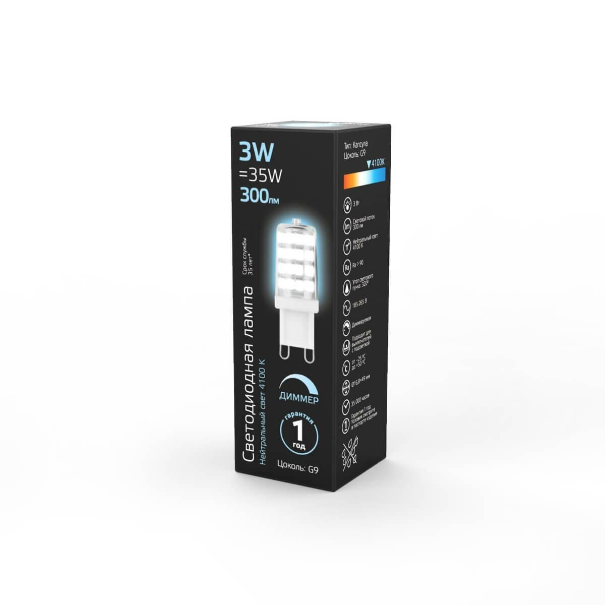 Gauss Светодиодная лампа Gauss "Капсула" 3Вт 300Лм G9 4100К Диммируемая