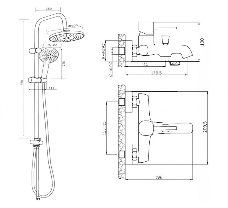 Bronze de Luxe Душевой комплект Bronze de Luxe Scandi 14582BR с внутренней частью, бронза