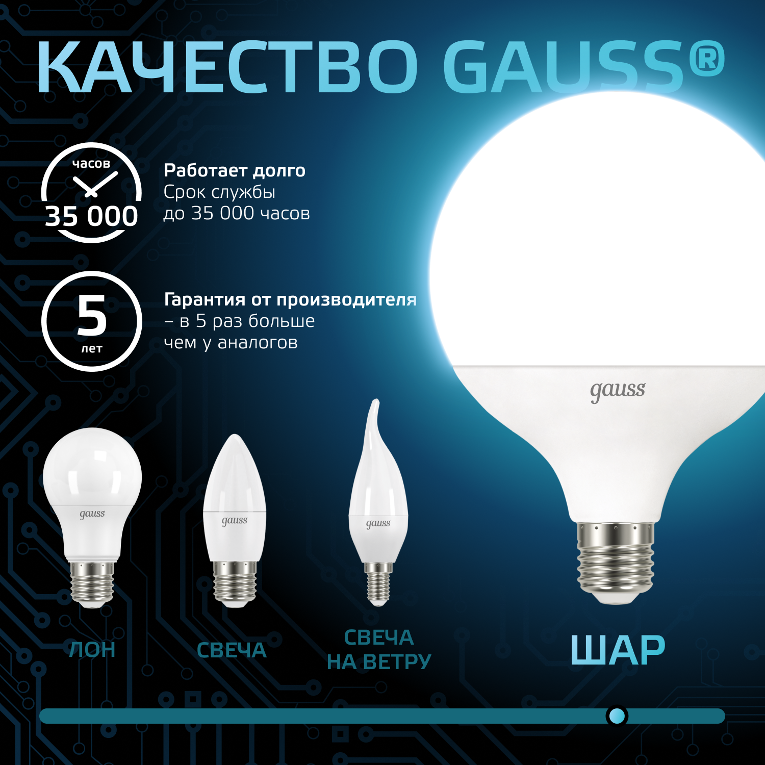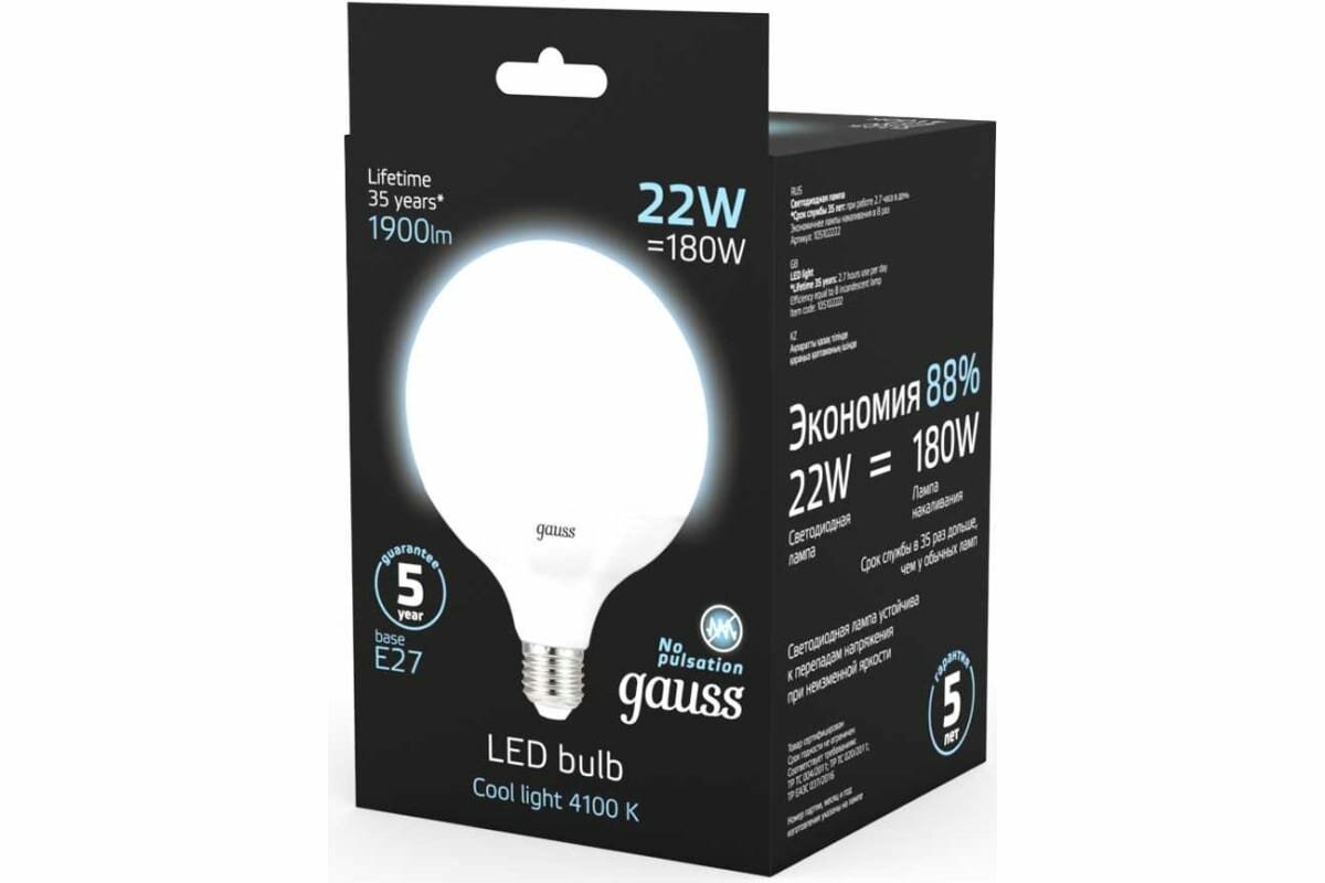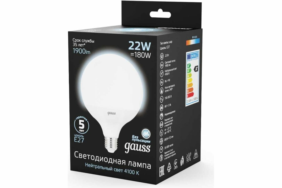 Лампа светодиодная gauss 105102222, E27, G125, 22 Вт, 4100 К
