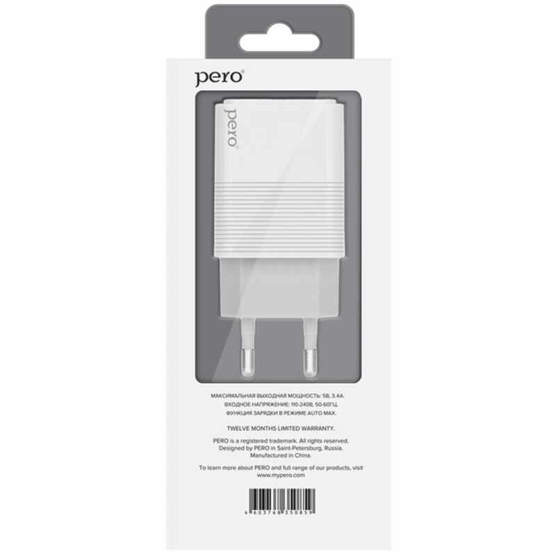 Купить Зарядное устройство сетевое PERO TC08 AUTO MAX 2USB 3.4А белый
