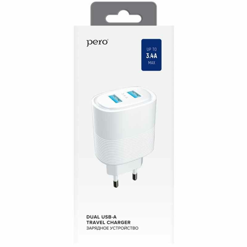 Сетевое зарядное устройство PERO TC08 AUTO MAX, 2 USB, 3.4 А, белое