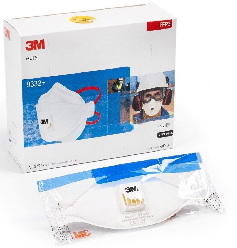 Респиратор 3M Aura 9332+, FFP3 одноразовый, упаковка 10 шт.