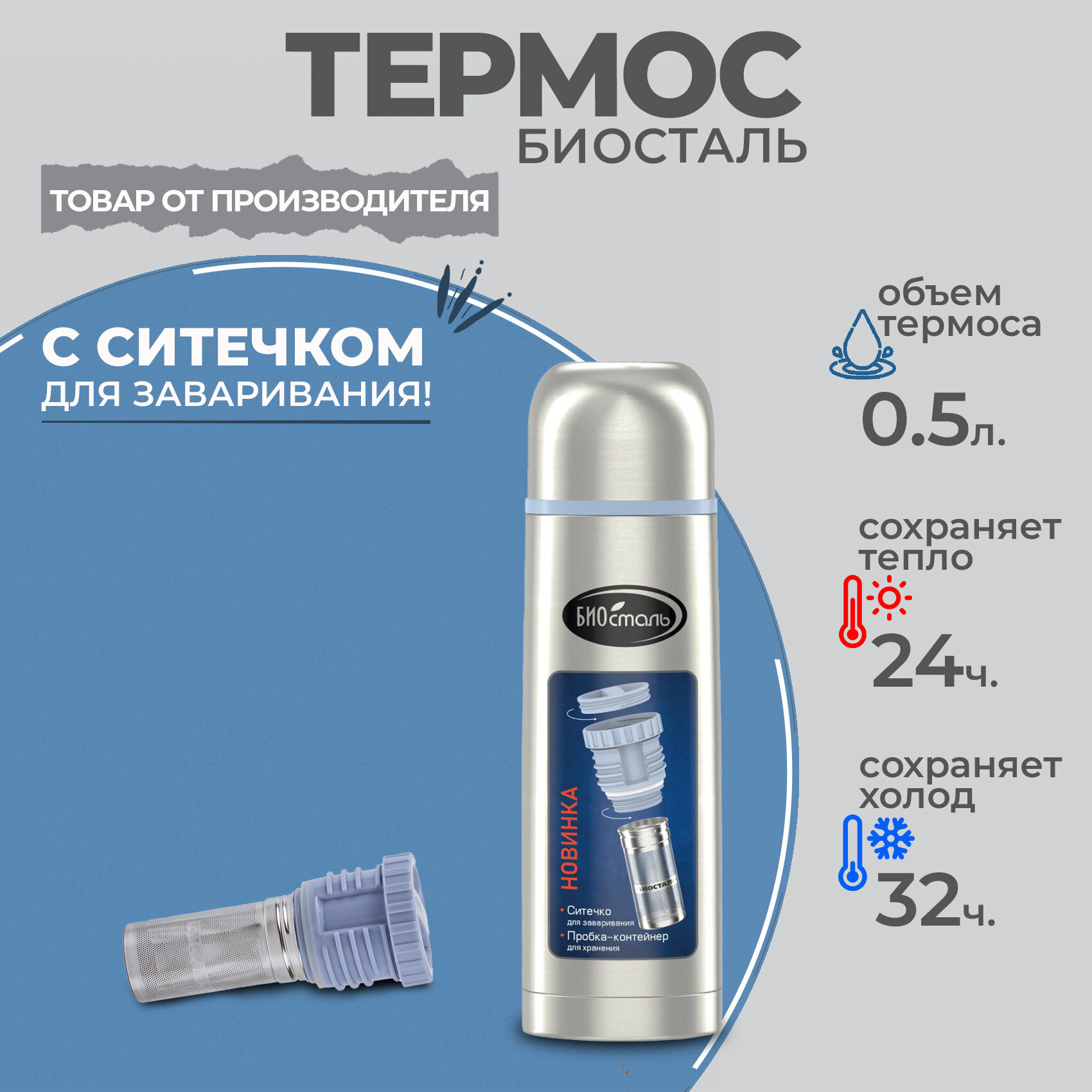 Термос биосталь NВ-350Z, пробка с ситечком