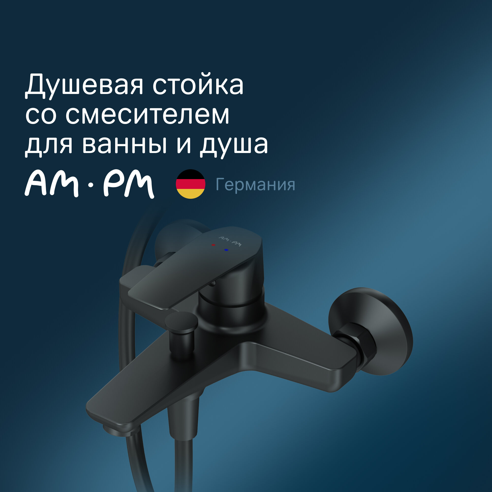 СохранитьДушевая система AM.PM Gem F42890A14 смеситель для ванны, верхний и ручной душ, штанга, черный интересное: