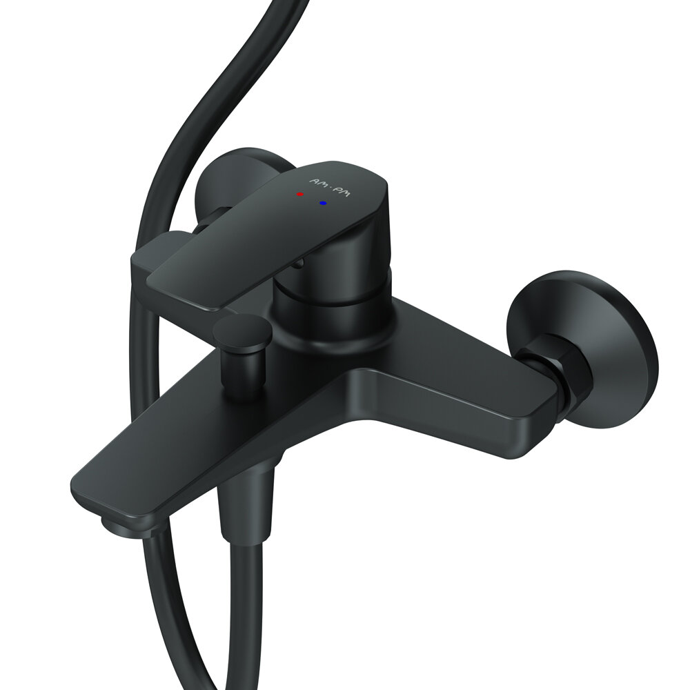 Набор смесителей 2 в 1 AM.PM Gem F42890A14 черный матовый, смеситель для ванны/душа, верхний душ