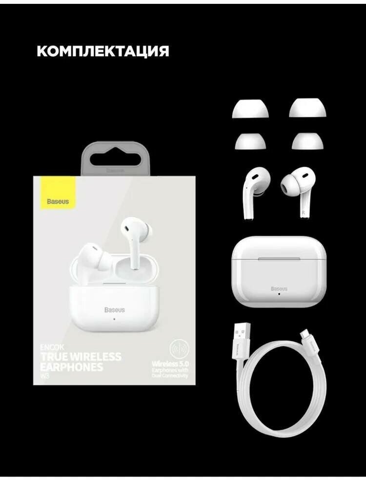 Беспроводные наушники Baseus W3 Encok, белый