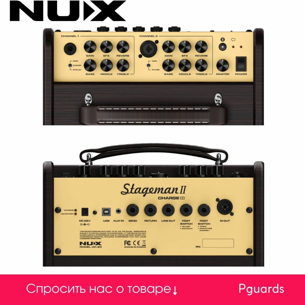 NUX AC-80 Stageman II , комбоусилитель для акустической гитары, 80Вт, аккумуляторный