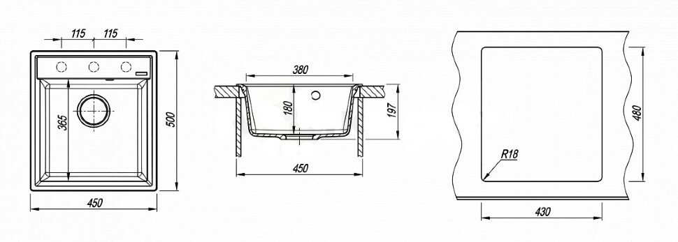 | Форма чаши | прямоугольная |