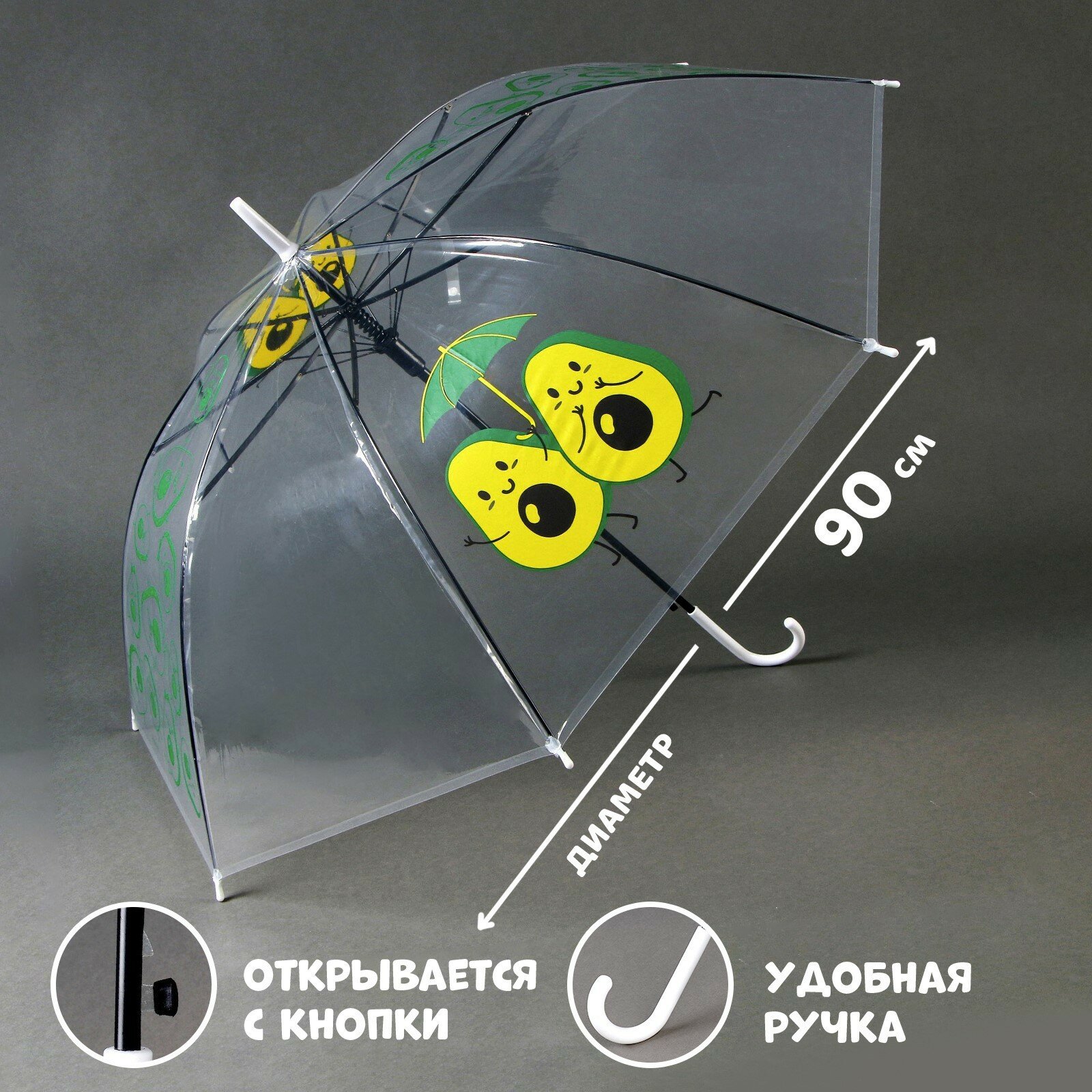Купить Зонт детский «Авокадо» полуавтомат прозрачный, d=90см