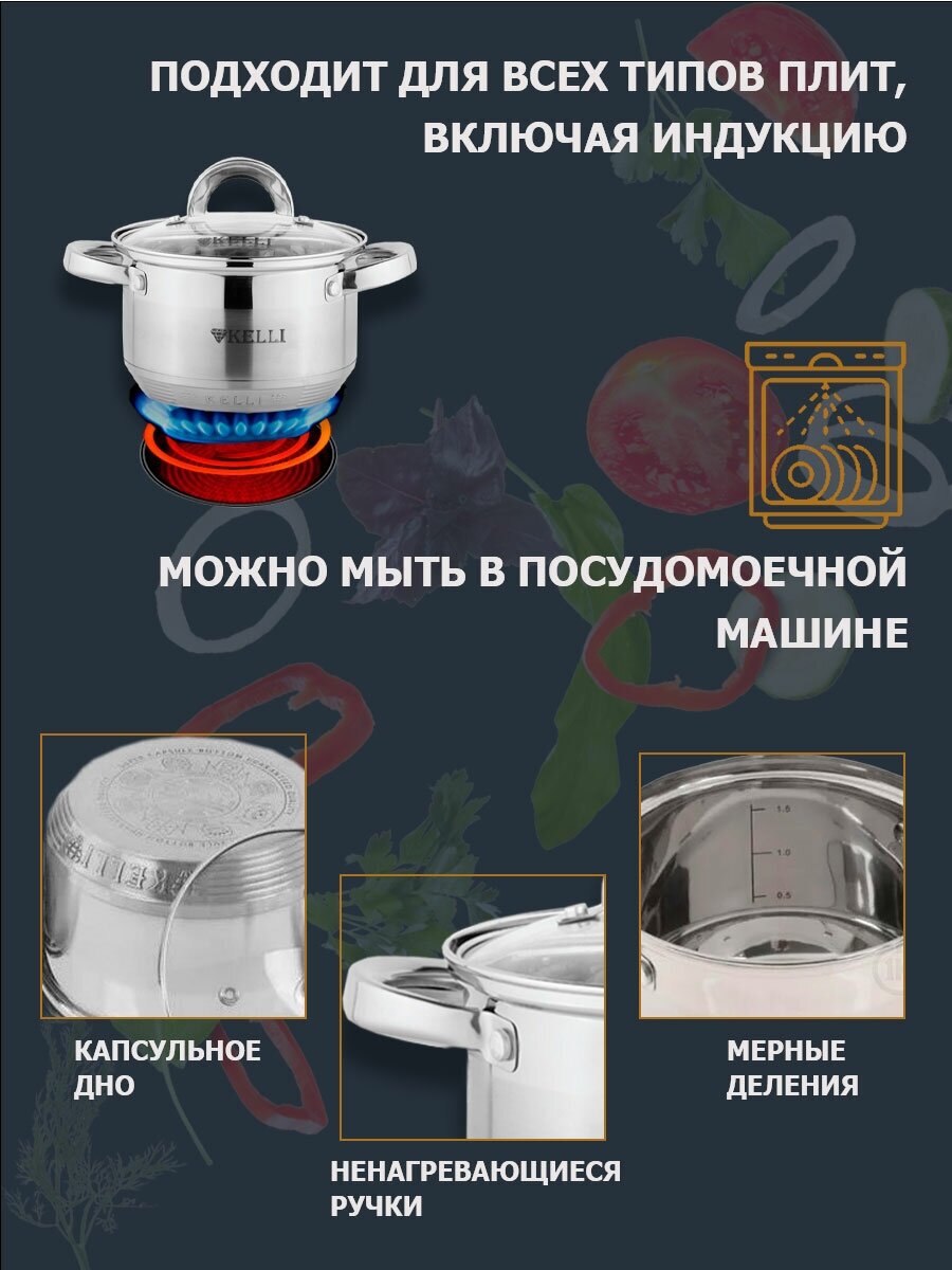 Набор посуды 4 кастрюли из нержавеющей стали KELLI интересное: