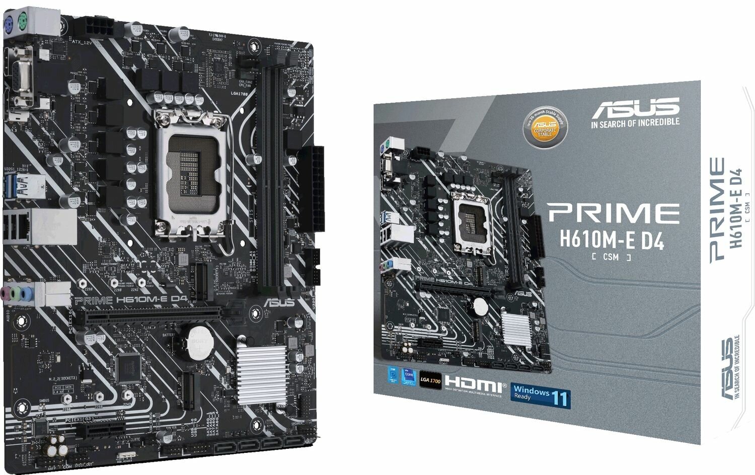 Материнская плата ASUS PRIME H610M-E D4-CSM Socket 1700 H610 2xDDR4 1xPCI-E 16x 1xPCI-E 1x 4xSATA III mATX Retail