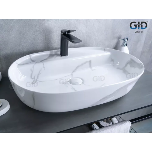 Раковина накладная GID Mnc346C 61 под мрамор/белая глянцевая