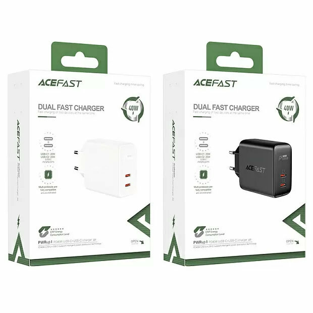 Сетевое зарядное устройство ACEFAST A9 Dual fast Charger, USB-C + USB-C, PD40W, Белый