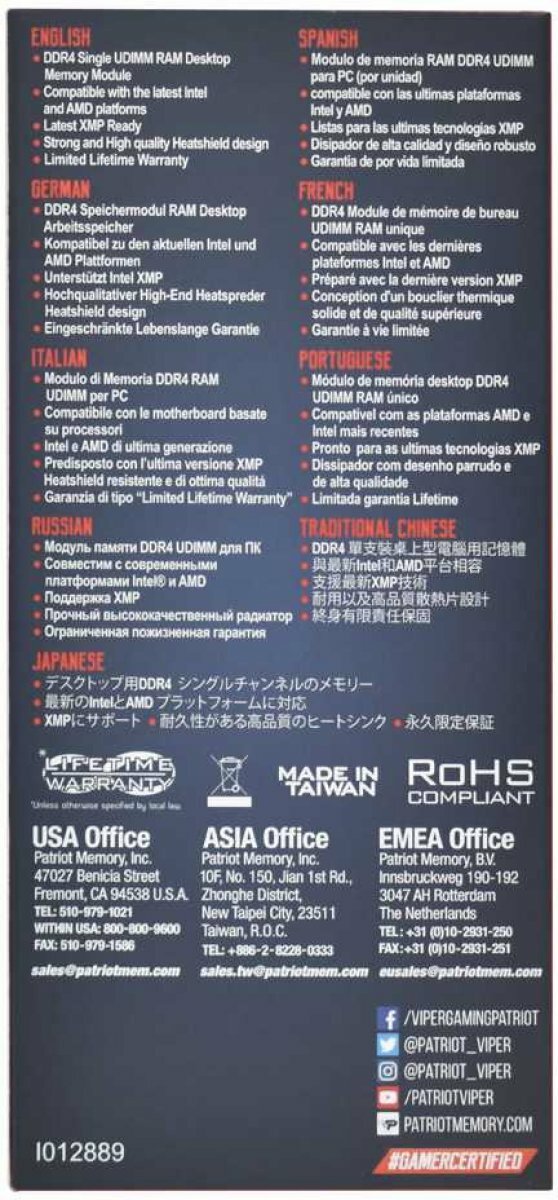 Patriot DDR4 8Gb 4000MHz pc-32000 (pve248g400c0) PVE248G400C0 .