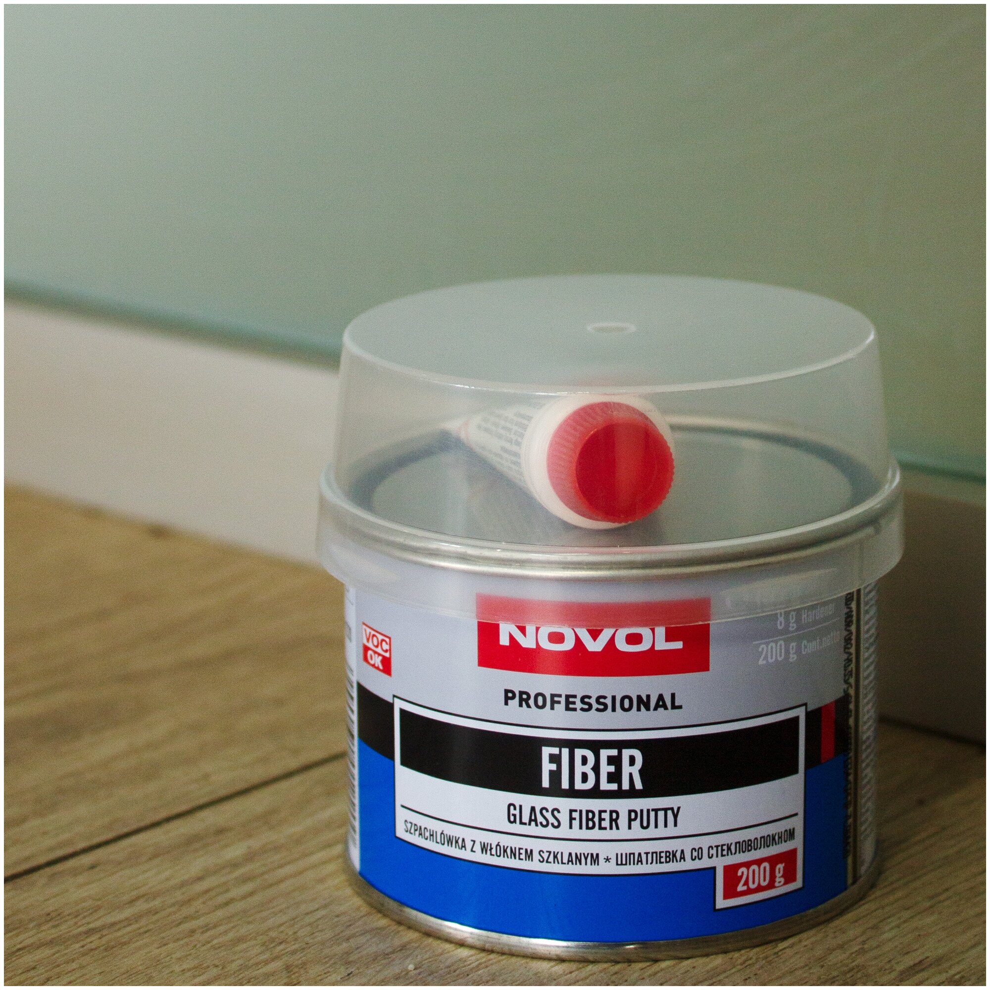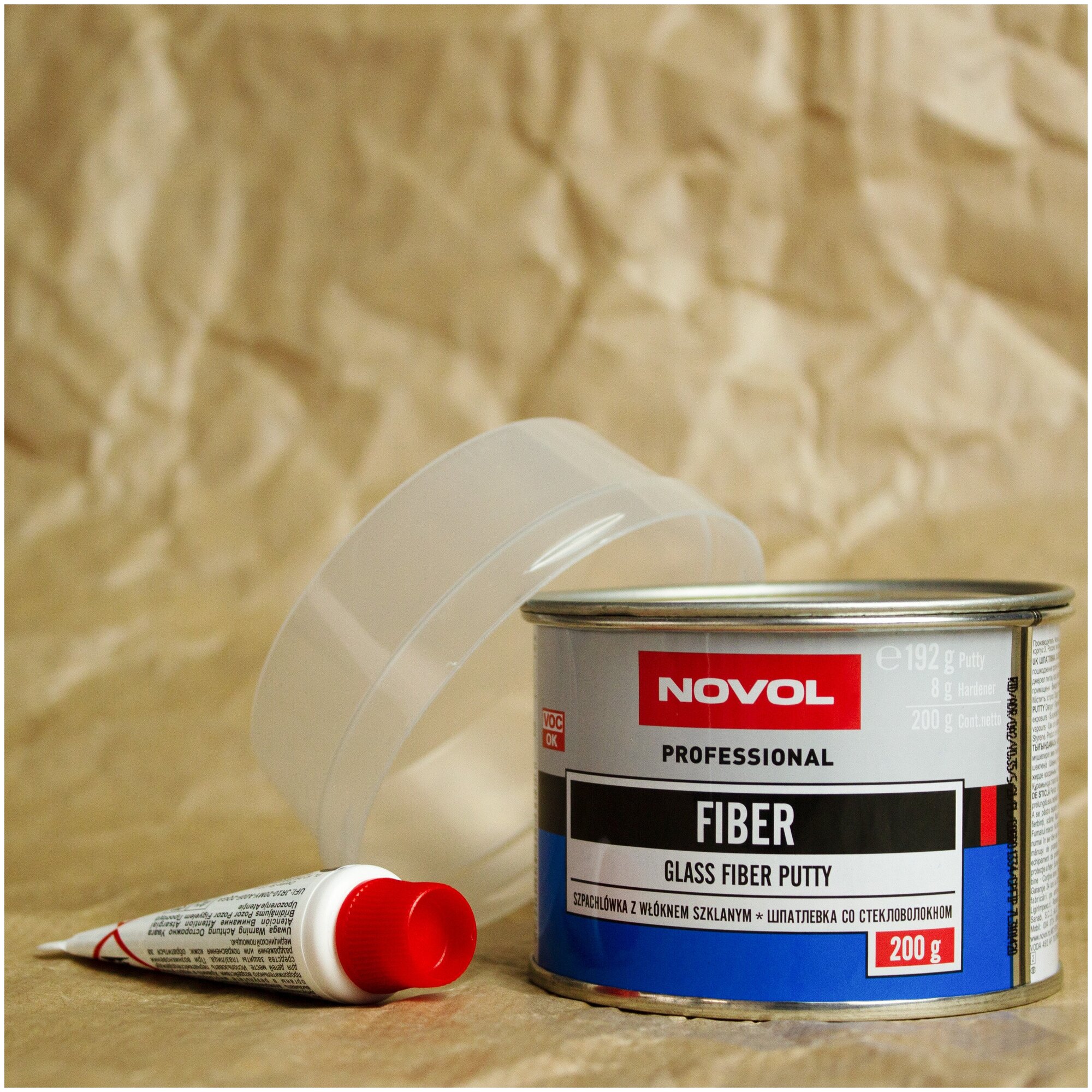 Шпатлевка автомобильная полиэфирная со стекловолокном Novol Professional Glass Fiber Putty банка 200г + отвердитель Betox-50PC туба 8г - 1220