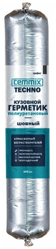 Герметик полиуретановый кузовной Cemmix, 600 мл, графит, файл-пакет