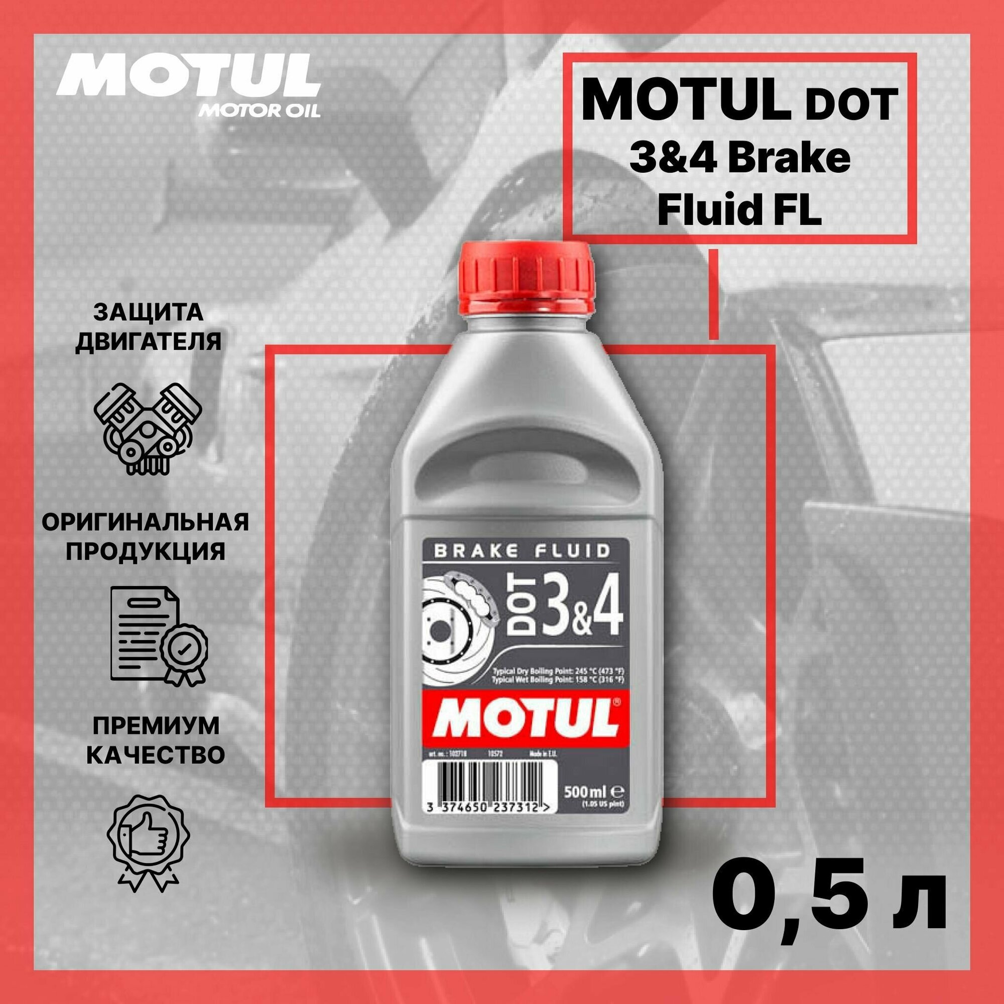 Motul^102718 Жидкость Тормозная Motul Brake Fluid Dot3&4 0,5 Л 102718 MOTUL арт. 102718