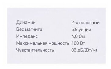 Колонки автомобильные Digma DCA-S402 (без решетки) 160Вт 86дБ 4Ом 10см (4дюйм) (ком:2кол.)