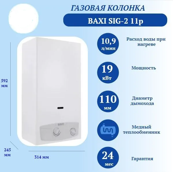 СохранитьПроточный газовый водонагреватель BAXI SIG-2 11p, белый интересное: