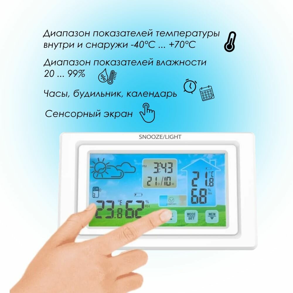 Метеостанция SOVANCI, беспроводная, с датчиком, с часами, белая