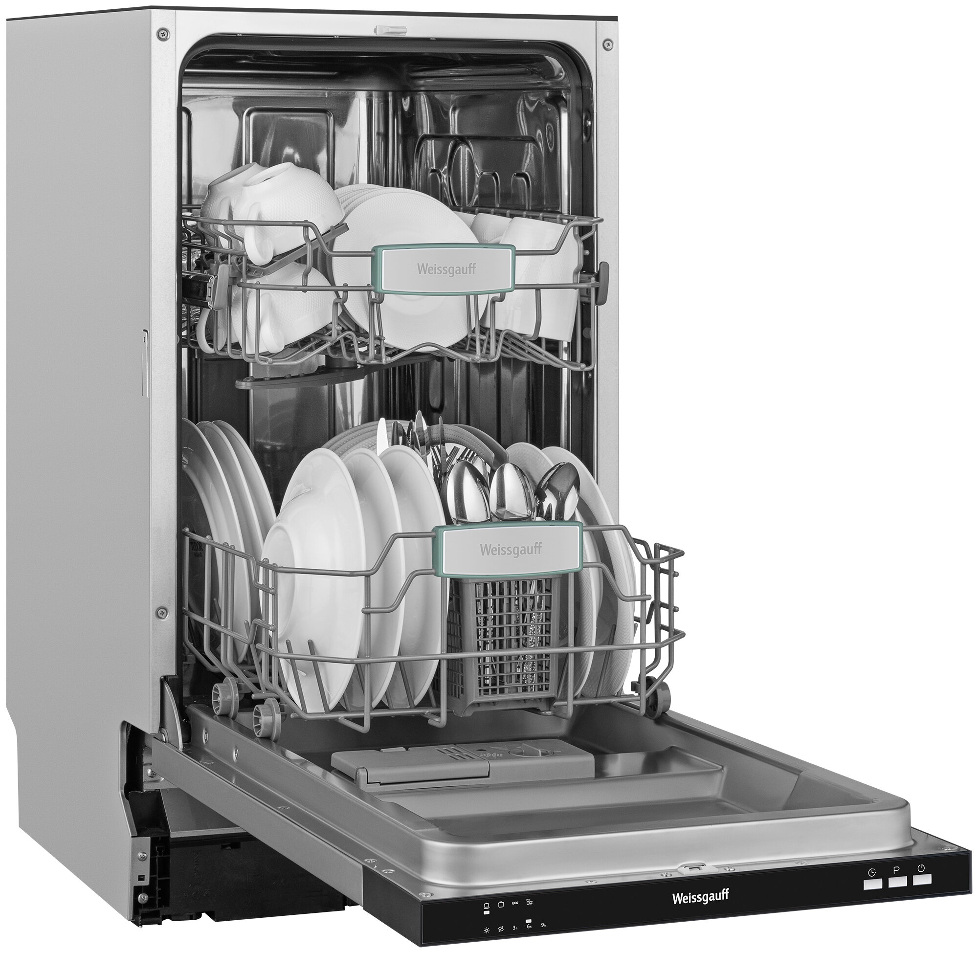 Встраиваемая посудомоечная машина узкая 45 см с лучом на полу Weissgauff BDW 4004, А++