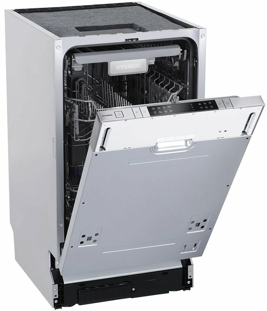 Встраиваемая посудомоечная машина Hyundai HBD 480, узкая, ширина 44.8см, полновстраиваемая, загрузка 10 комплектов, серебристый
