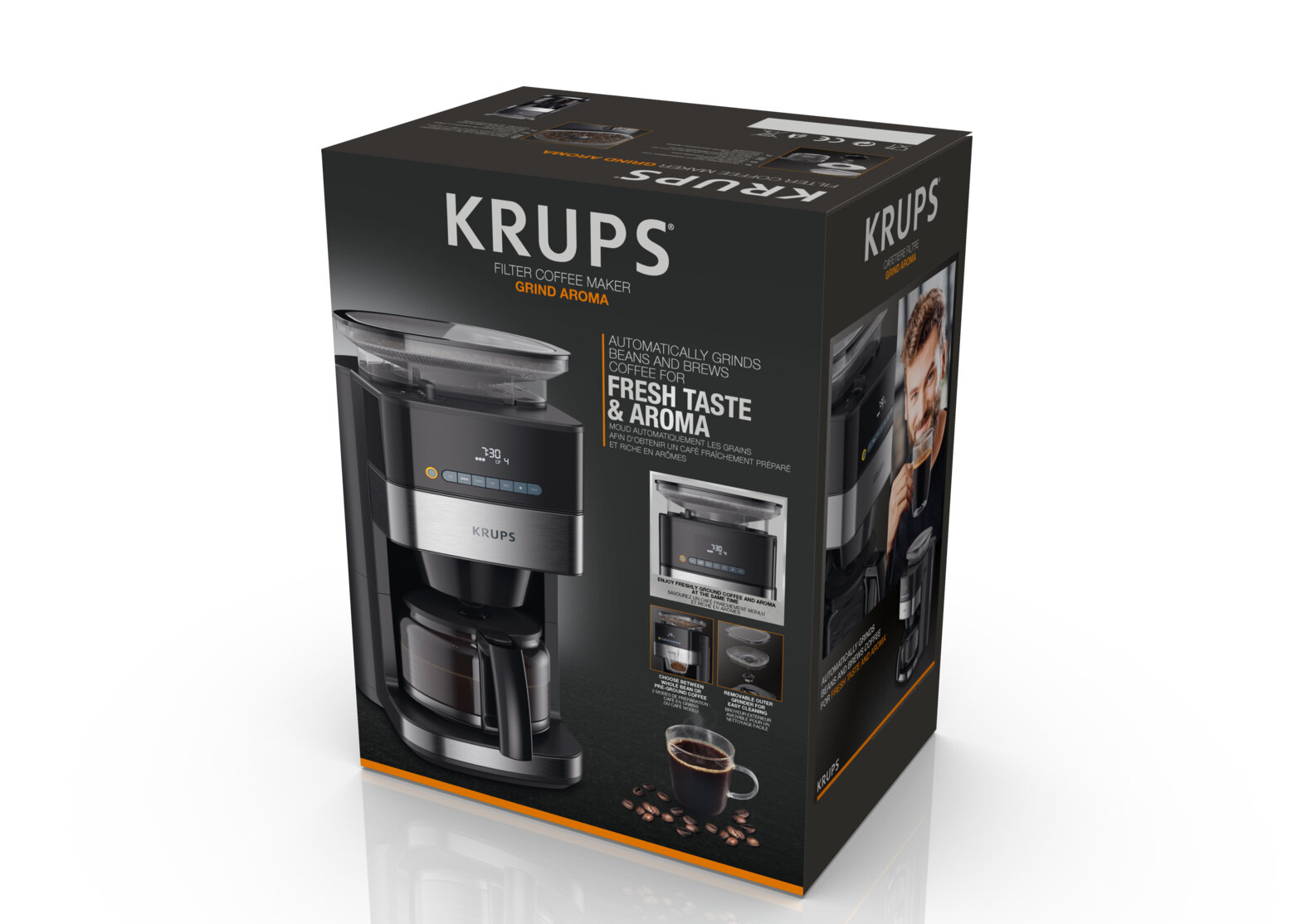 Купить Кофеварка капельная Krups Grind Aroma KM832810, таймер, 3 степени помола, поддержание температуры 30 мин, черный