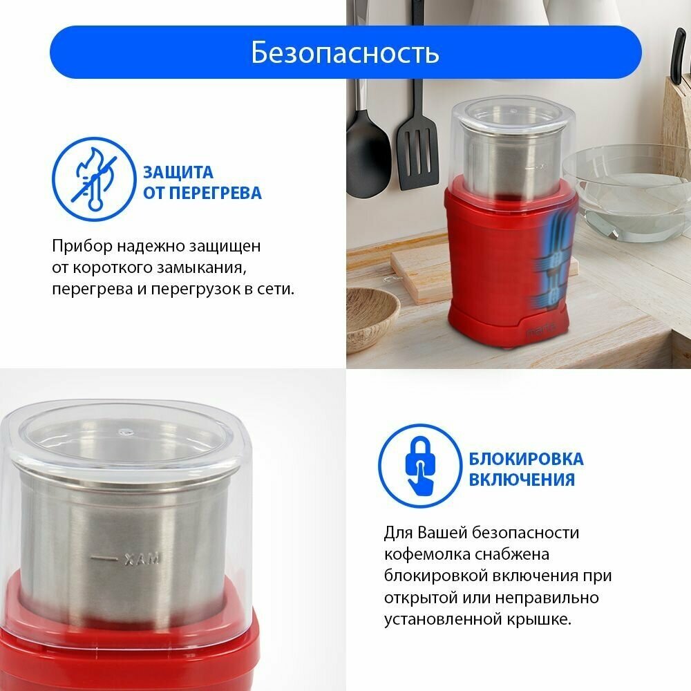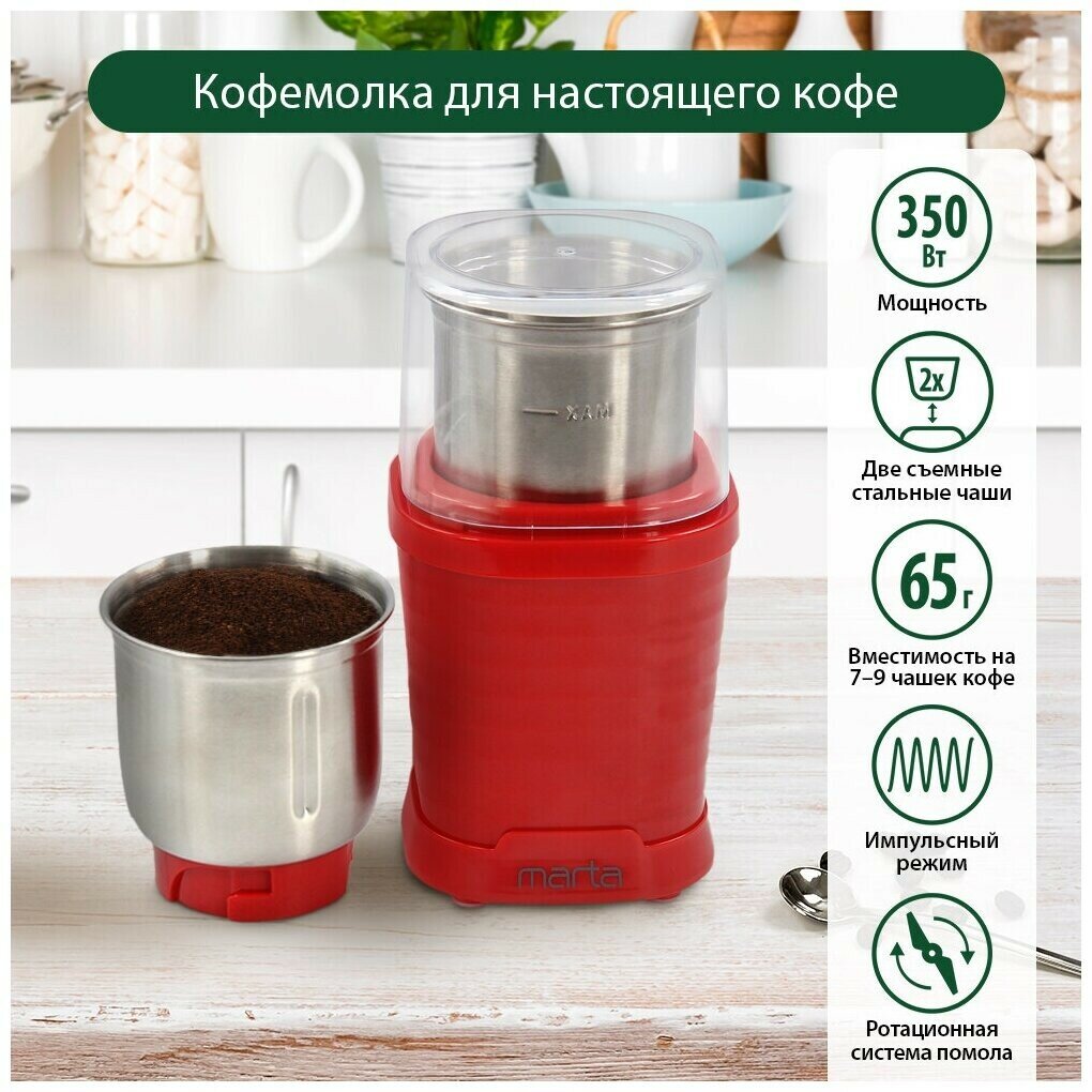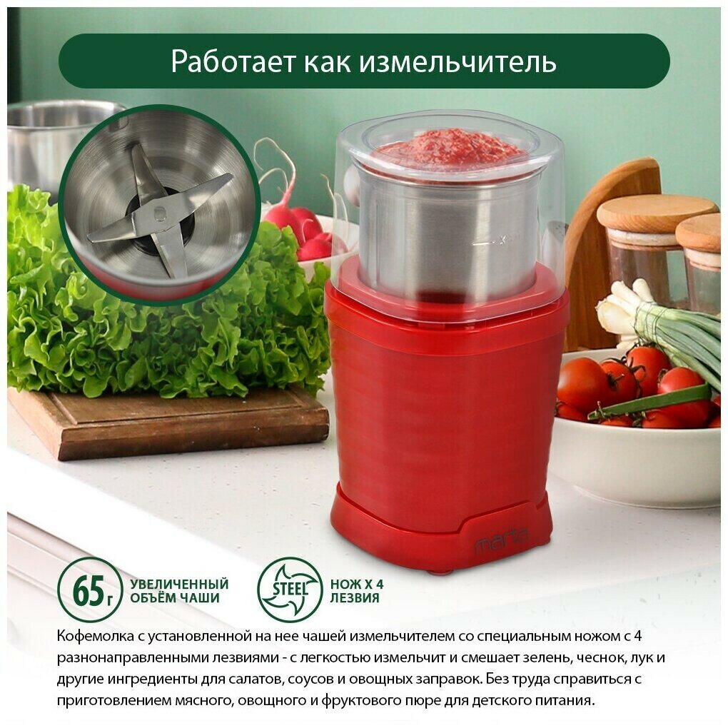 Кофемолка MARTA MT-CG2182B 65 гр, красный рубин интересное: