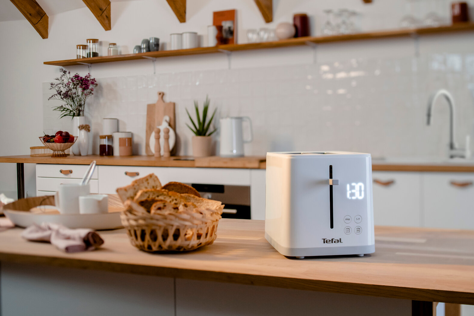 Тостер Tefal Sense TT693110, сенсорный дисплей, 7 уровней прожарки, разморозка, подогрев, 850 Вт, белый