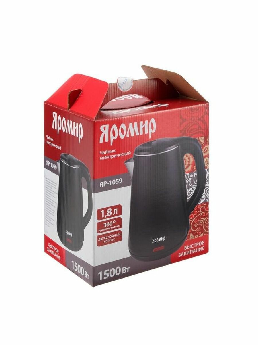 Чайник электрический 1500 Вт, 1,8 л яромир ЯР-1059, двухслойный корпус, черный