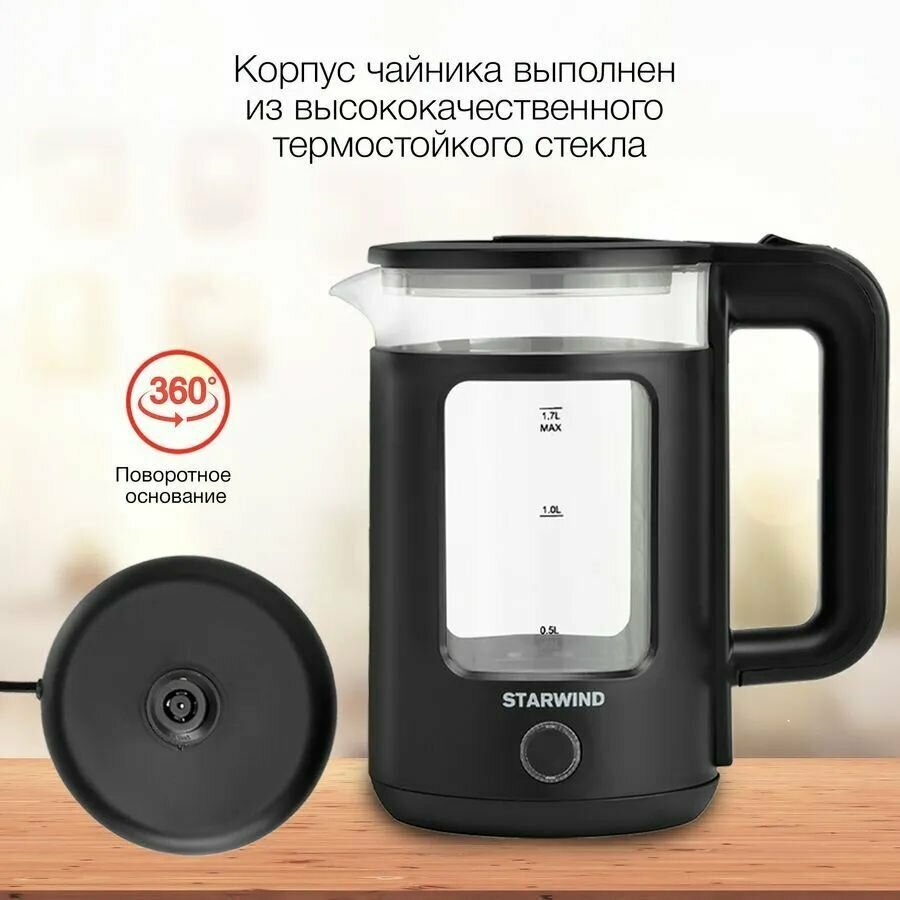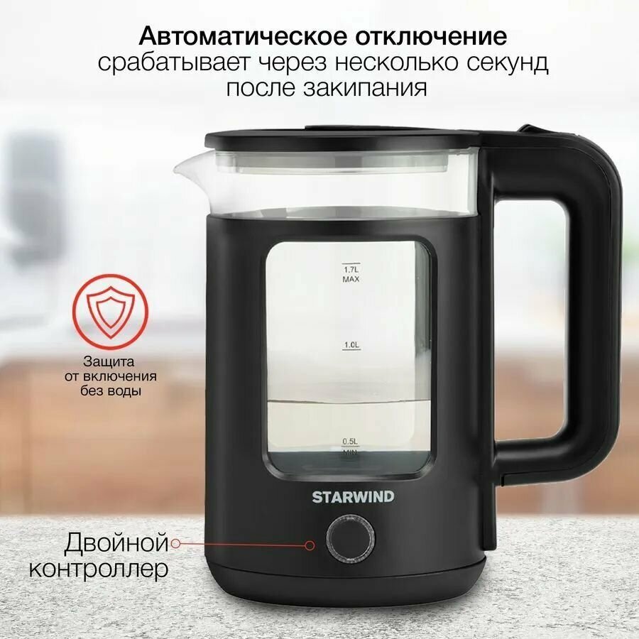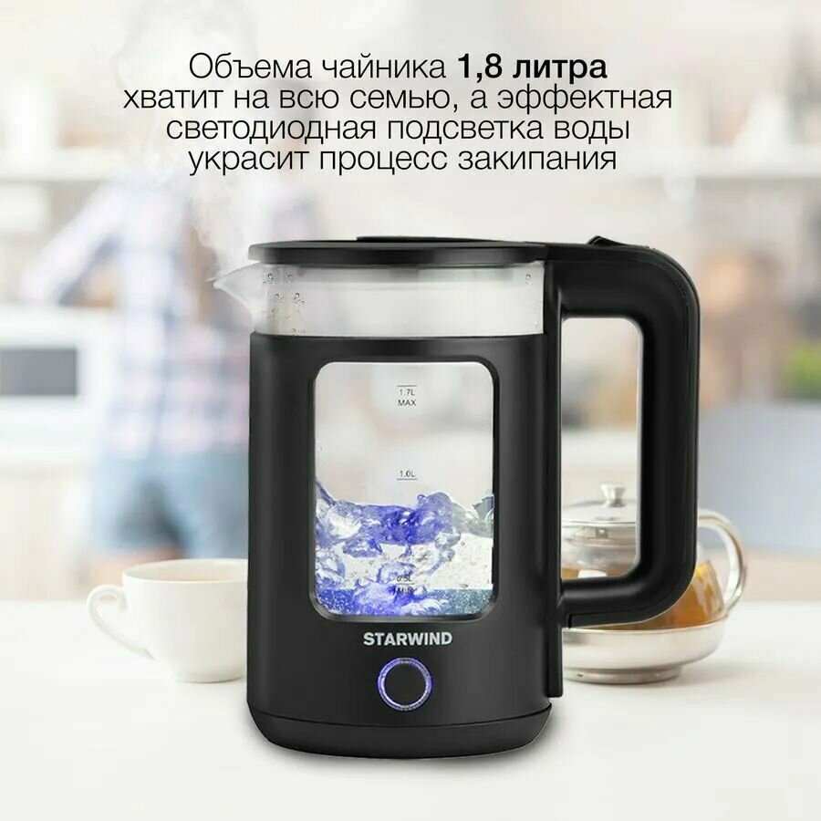 Чайник электрический Starwind SKG1053, 1,7 л, 1800 Вт, черный
